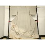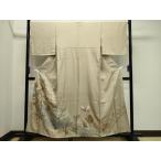 中古 色留袖 訪問着仕立て 一つ紋 違い鷹の羽 袷 正絹 白ベージュ 松 竹 笹 身丈154cm 裄丈64cm 結婚式 入学式 卒業式 Sサイズ相当 リサイクル着物