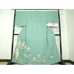【d1】リサイクル 着物 色留袖 訪問着仕立て 正絹 袷 丸に井桁 三つ紋 灰緑 松 牡丹 金彩 送料無料 中古 再326