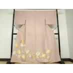 色留袖 着物 中古 正絹 袷 フォーマル 紋付 三つ紋 金駒刺繍 蘇州刺繍 花の図 身丈159cm 裄62.5cm M きもの北條 A1254-2