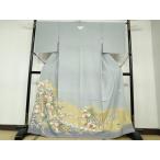着物 色留袖 君島一郎 グレー 五瓜ニ桔梗 百花繚乱 刺繍 /B08