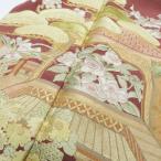特選 色留袖 着物 中古 袷 紋付 一つ紋 刺繍 七宝 亀甲 宝物 松竹梅 地模様 黒紅色 多色 身丈155.5cm 裄64cm SA きもの北條 A1146-10