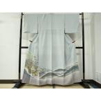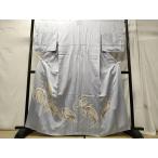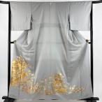 色留袖 身丈168.5cm 裄丈66cm M 袷 人間国宝 福田喜重 落款あり 枝梅 刺繍 金彩 灰色 正絹 逸品 中古