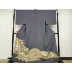 平和屋着物●豪華色留袖 風景地紋 鳩羽色 正絹 逸品 未使用 DABB9659du