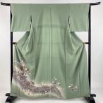 色留袖 身丈170cm 裄丈69cm L 袷 落款あり 松竹梅 菊 金彩 刺繍 灰緑 正絹 秀品 中古