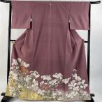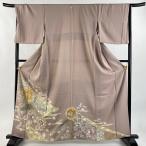 色留袖 身丈159cm 裄丈65cm M 袷 草花 団扇 金糸 金彩 灰紫 正絹 秀品 中古