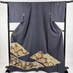 色留袖 身丈167cm 裄丈66.5cm M 袷 ふき棉仕立て 華文 花唐草 金糸 金彩 墨色 正絹 秀品 三つ紋 中古