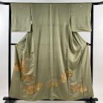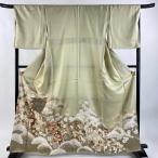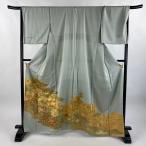 色留袖 身丈155cm 裄丈65cm M 袷 華文 狩猟文 金銀彩 ぼかし 灰緑 正絹 名品 一つ紋 中古
