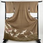 色留袖 身丈169cm 裄丈67.5cm L 袷 松竹梅 鶴 金彩 ぼかし 茶色 正絹 美品 秀品 一つ紋 中古
