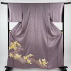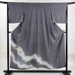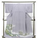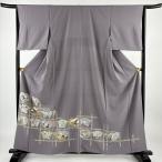 色留袖 身丈159cm 裄丈67.5cm L 袷 落款あり 雪輪 鶴 灰紫 正絹 秀品 一つ紋 中古