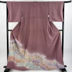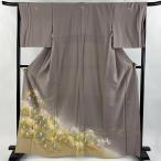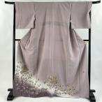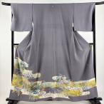 色留袖 身丈153cm 裄丈66cm M 袷 桧扇 草花 金彩 ぼかし 灰紫 正絹 美品 秀品 一つ紋 中古