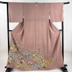 色留袖 身丈165cm 裄丈65cm M 袷 中村乃武夫 落款あり 菊 金糸 金彩 濃ピンク 正絹 名品 一つ紋 中古