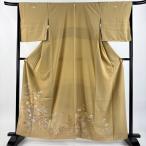 色留袖 身丈159cm 裄丈65cm M 袷 落款あり 鏡裏文 草花 金糸 ベージュ 正絹 秀品 一つ紋 中古