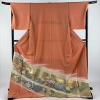 美品 色留袖 身丈175cm 裄丈68cm L 袷 牡丹 流水 金銀糸 ぼかし オレンジ 正絹 秀品 一つ紋 中古