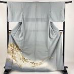 色留袖 身丈160cm 裄丈67.5cm L 袷 和田光正 落款あり 鶴 草花 金銀彩 ぼかし 青灰色 正絹 名品 一つ紋 中古