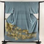色留袖 身丈156.5cm 裄丈63cm S 袷 松 霞 金通し 金彩 青灰色 正絹 秀品 三つ紋 中古