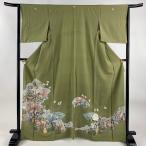 色留袖 身丈159.5cm 裄丈67cm M 袷 和田光正 落款あり 草花 金銀彩 ぼかし 抹茶色 正絹 逸品 一つ紋 中古
