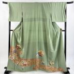 色留袖 身丈163cm 裄丈64.5cm M 袷 落款あり 鴛鴦 草花 金彩 ぼかし 灰緑 正絹 秀品 一つ紋 中古