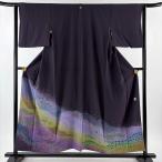 色留袖 身丈153cm 裄丈65cm M 袷 滝泰 落款あり 波 花びら 刺繍 絞り 濃紫 正絹 逸品 一つ紋 中古