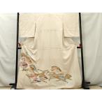 平和屋着物■色留訪問着 駒刺繍 地紙重ね飛鶴花文 金銀彩 正絹 逸品 AABA8158gw