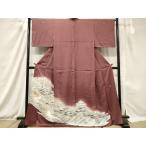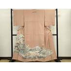 平和屋着物■色留訪問着 刺繍 風景文 水柿色 正絹 逸品 AABA5449sx
