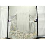 半衿 振袖 成人式 訪問着 刺繍 白地 白糸 礼装用 黒留袖 色留袖 礼装用 黒留袖 色留袖 七宝繋ぎ アンティーク 和装 着物 結婚式 No.10-0511