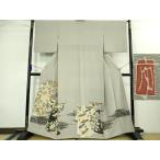 着物 色留袖 君島一郎 グレー 五瓜ニ桔梗 百花繚乱 刺繍 /B08