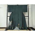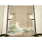 平和屋着物●伝統工芸士 曽根武勇 色留袖 紬地 遠山飛鶴松文 金糸 正絹 逸品 AABE4409ck