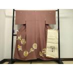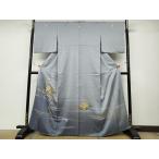 平和屋着物●色留訪問着 駒刺繍 松皮菱向い鳥花文 金糸 正絹 逸品 AABE7728ck
