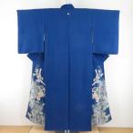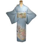 色留袖 アンティーク 昔きもの 袷 広衿 一つ紋 正絹 箔 鳳凰に花々 青色x多色 仕立て上がり着物 レトロ 大正ロマン 身丈150cm