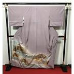 中古 Mサイズ 色留袖 正絹 三つ紋付 薄紫地に地紙模様 袷着物 比翼なし あすつく