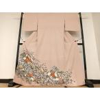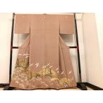 特選 色留袖 着物 中古 袷 紋付 五つ紋 金駒刺繍 銀座 きしや 花の図 松竹梅 春秋 紅消鼠色 身丈154.5cm 裄62cm SA きもの北條 A988-6