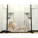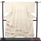 中古 色留袖 訪問着仕立て 一つ紋 違い鷹の羽 袷 正絹 白ベージュ 松 竹 笹 身丈154cm 裄丈64cm 結婚式 入学式 卒業式 Sサイズ相当 リサイクル着物