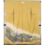 色留袖 着物 未使用 袷 紋付 一つ紋 二代目 清次郎 風景 遠山 暈し 淡黄蘗色 多色 身丈165cm 裄64.5cm L トール きもの北條 A1104-5