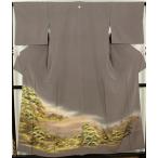 色留袖 着物 中古 正絹 袷 紋付 五つ紋 作家物 落款 風景 梅 松 灰桜色 多色 身丈159cm 裄66cm M きもの北條 A1291-5