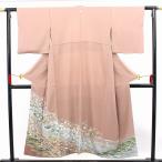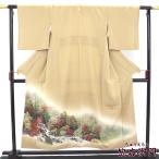 中古 色留袖 留袖 とめそで 訪問着仕立て レディース 正絹 ベージュ 手描き風 風景柄 一つ紋「蔦」 身丈156cm 裄丈65.5cm リサイクル着物 リユース着物