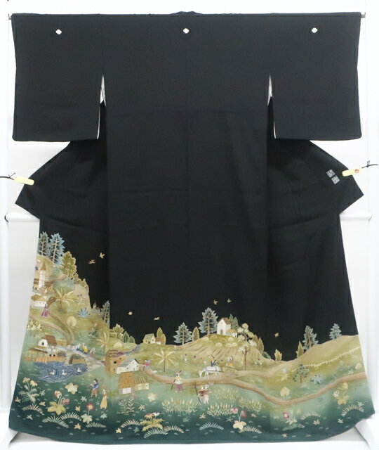 着物 本加賀友禅 伝統工芸品 黒留袖 杉浦伸 作 霞風景 あすかや [商品番号hm1674]