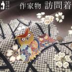 訪問着 着物 リサイクル 正絹 縮緬 作家物 金駒刺繍 こげ茶 フクロウ 桜 中古 仕立て上がり 身丈163 裄丈68.5 Lサイズ みやがわ sb16697