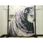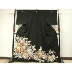 平和屋着物●豪華振袖 駒刺繍 風景花文 黒地 金彩 正絹 逸品 AABG4414fy