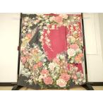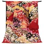 訪問着 身丈168.5cm 裄丈68.5cm L 袷 桜 刺繍 金糸 黒 正絹 逸品 中古