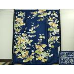 平和屋本店●極上 創業460年・千總 振袖 駒刺繍 扇面花文 紺青色地 金彩 三越扱い 逸品 DZAB3551kh6