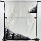 美品 訪問着 身丈160.5cm 裄丈66cm M 薄物 枝花 刺繍 染め分け クリーム 正絹 逸品 中古