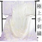 訪問着 手刺繍 正絹 薄紫 桜 未仕立て 仮絵羽 フォーマル 礼装用 着物 反物 枝垂れ桜 ぼかし 丹後ちりめん No.2-0151