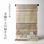 小岩井カリナ 手縫いお仕立て付き 長野県産 上田紬 手織り 鶸色系着物/和服/和装/カジュアル着/パーティ/ショッピング/食事/お出掛け着裄69.