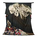 正絹 訪問着 相馬の古内裏 黒色 銀通し 日本画 浮世絵 歌舞伎 妖怪 インクジェット訪問着 仮絵羽 未仕立