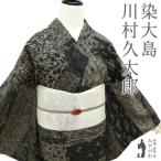 本場大島紬 着物 染大島 正絹 二代目 川村久太郎 作家物 黒地 寄せ柄 中古 仕立て上がり 身丈172 裄丈69.5 TLサイズ みやがわ sb16304