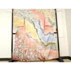 平和屋着物●訪問着 駒刺繍 絞り 舞桜 金彩 金通し地 正絹 逸品 DABB4382ps