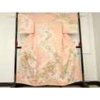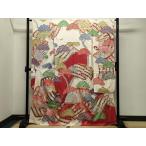 平和屋着物●紫綬褒章 巨匠『岩田専太郎』 振袖 駒刺繍 檜扇松文 金彩 正絹 逸品 CABB0064gh