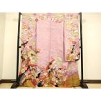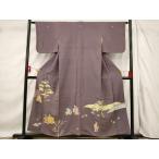 平和屋着物●訪問着 草花文 百合 ユリ 暈し染め 藤色地 金糸 金彩 正絹 逸品 AABF4212cs