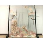 平和屋着物●豪華振袖・長襦袢(無双仕立て)セット 駒刺繍 吉祥花尽くし文 銀通し地 京都きもの友禅扱い 正絹 逸品 DABA4108az