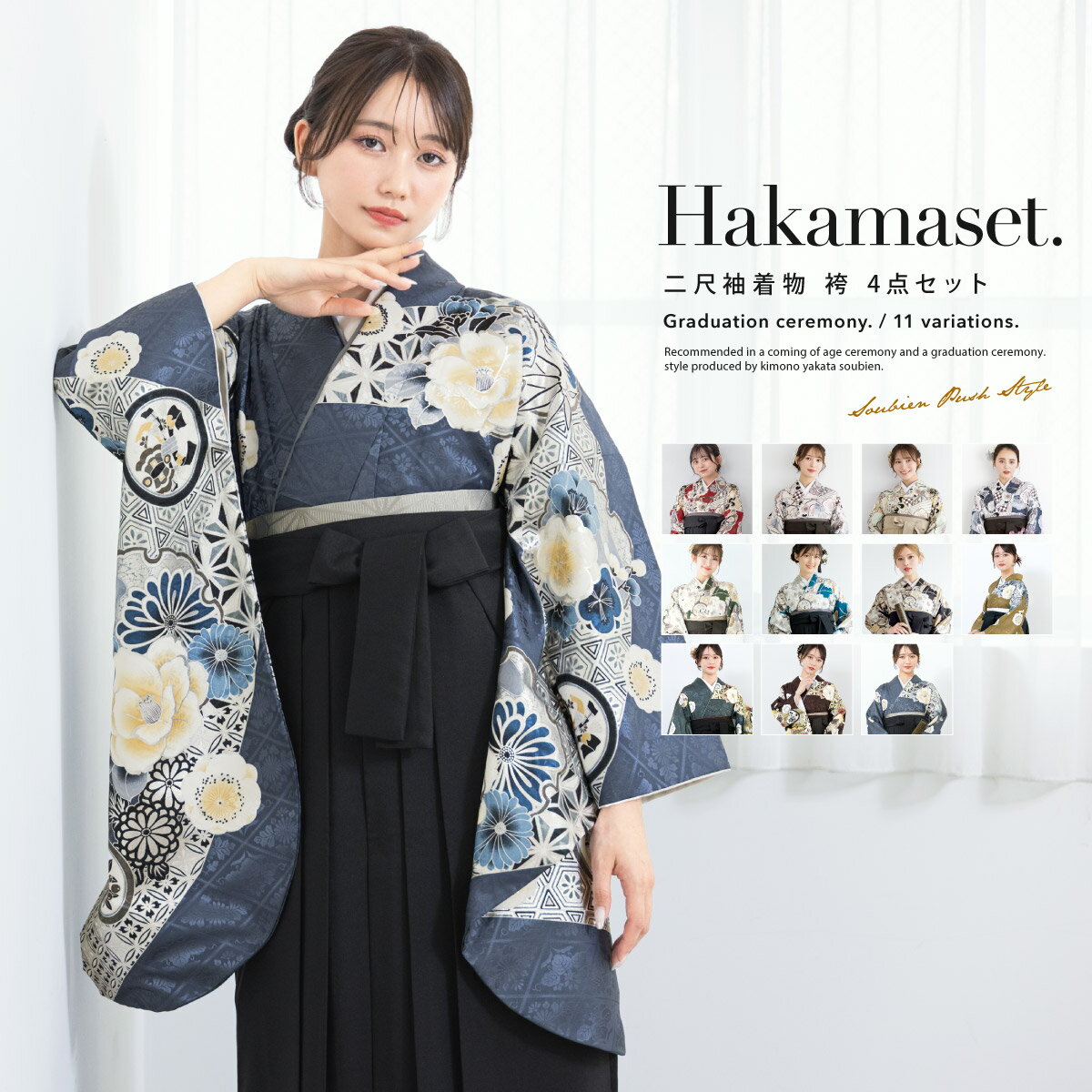 【200名限定30%OFF】スーパーSALE特別クーポン 袴セット 卒業式 大学生 レディース 女性 女の子 小学生 ジュニア 袴 4点セット 茶 ベージュ グレー ピンク 白 紺 緑 紫 花柄 二尺袖 着物 襦袢 帯 着物セット 子供 中学生 購入 販売 創美苑 送料無料 身長138から175cm対応